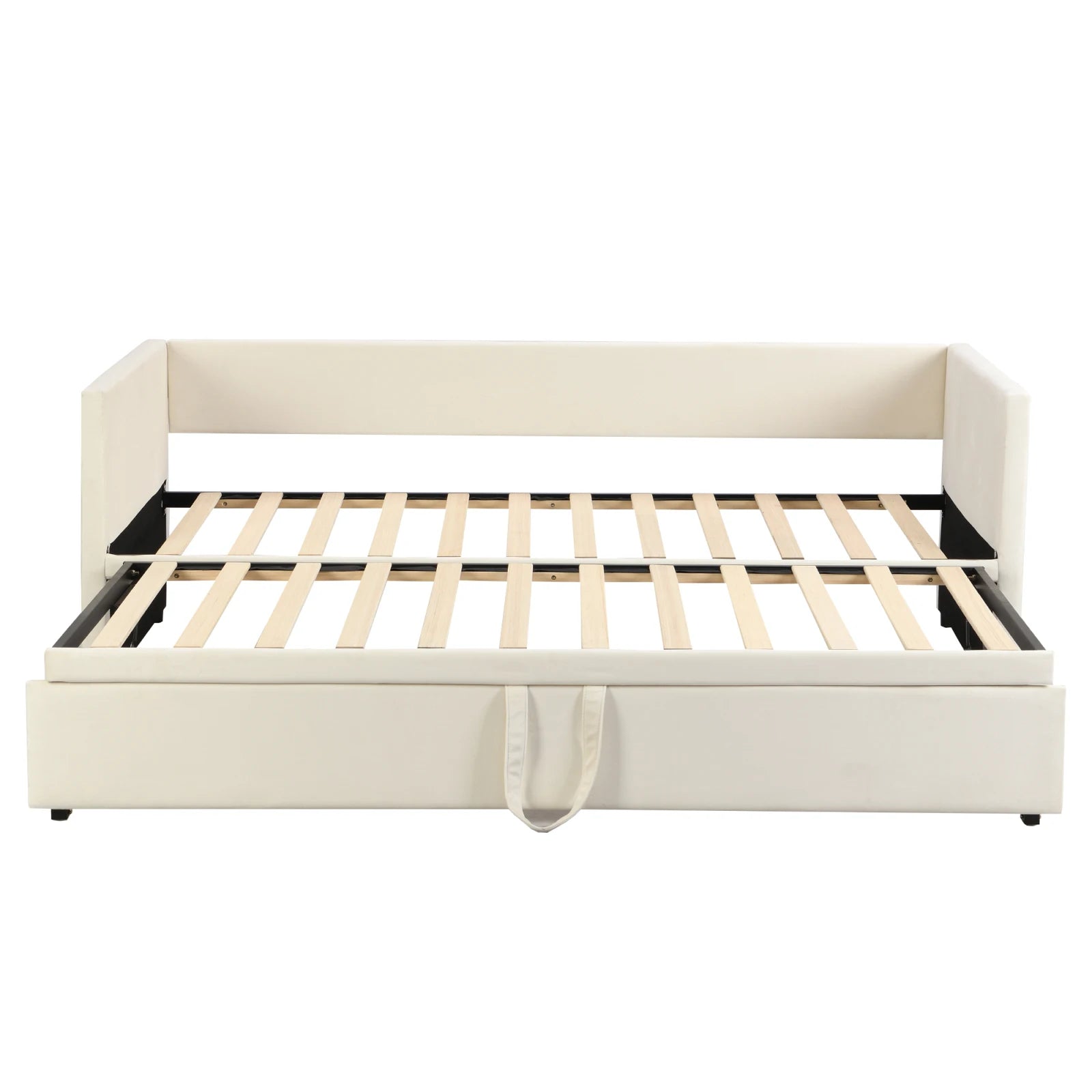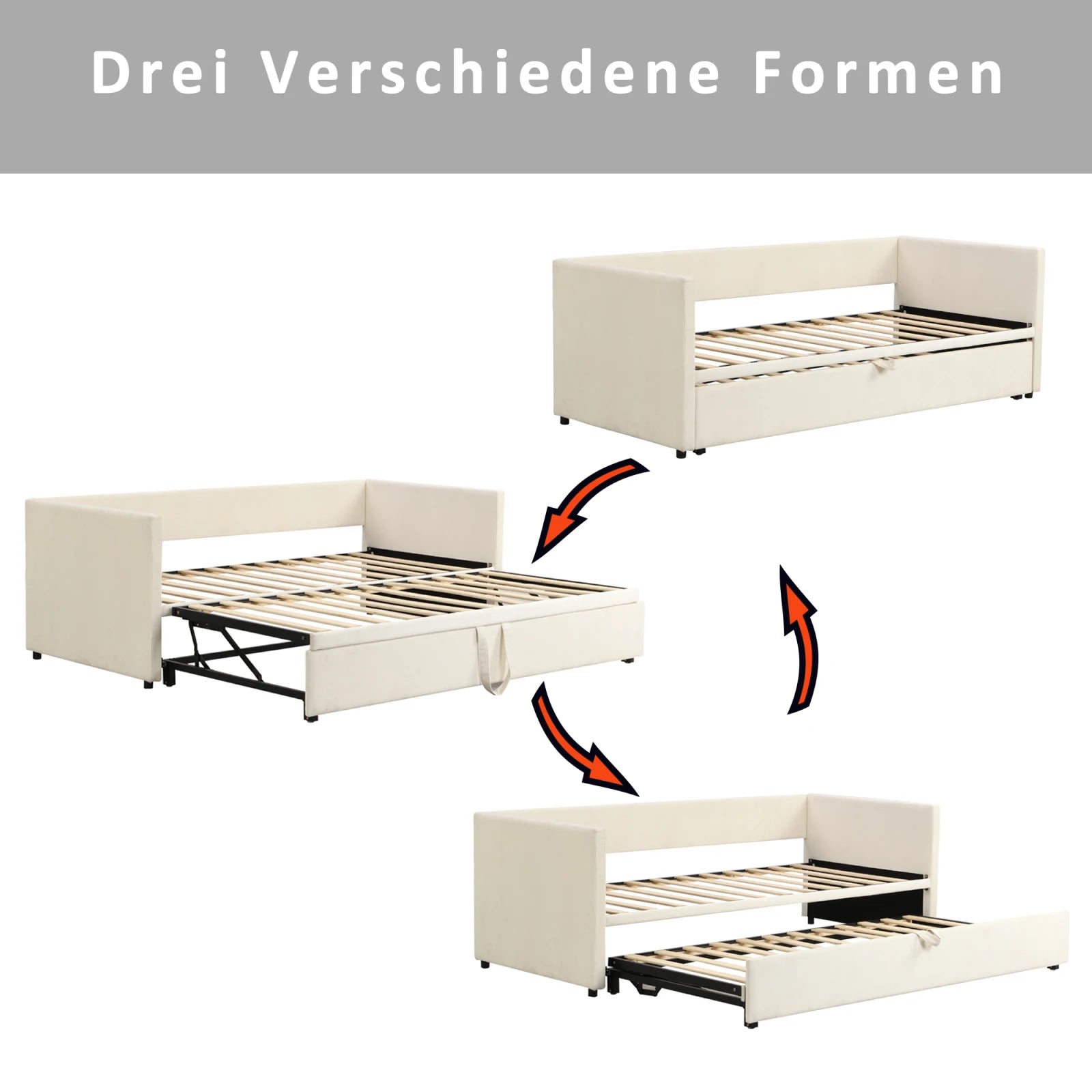 Anajqaqia 90/180x200cm Sofa Bed, Upholstered Double Bed with Slatted Frame and Backrest, Velvet, Beige