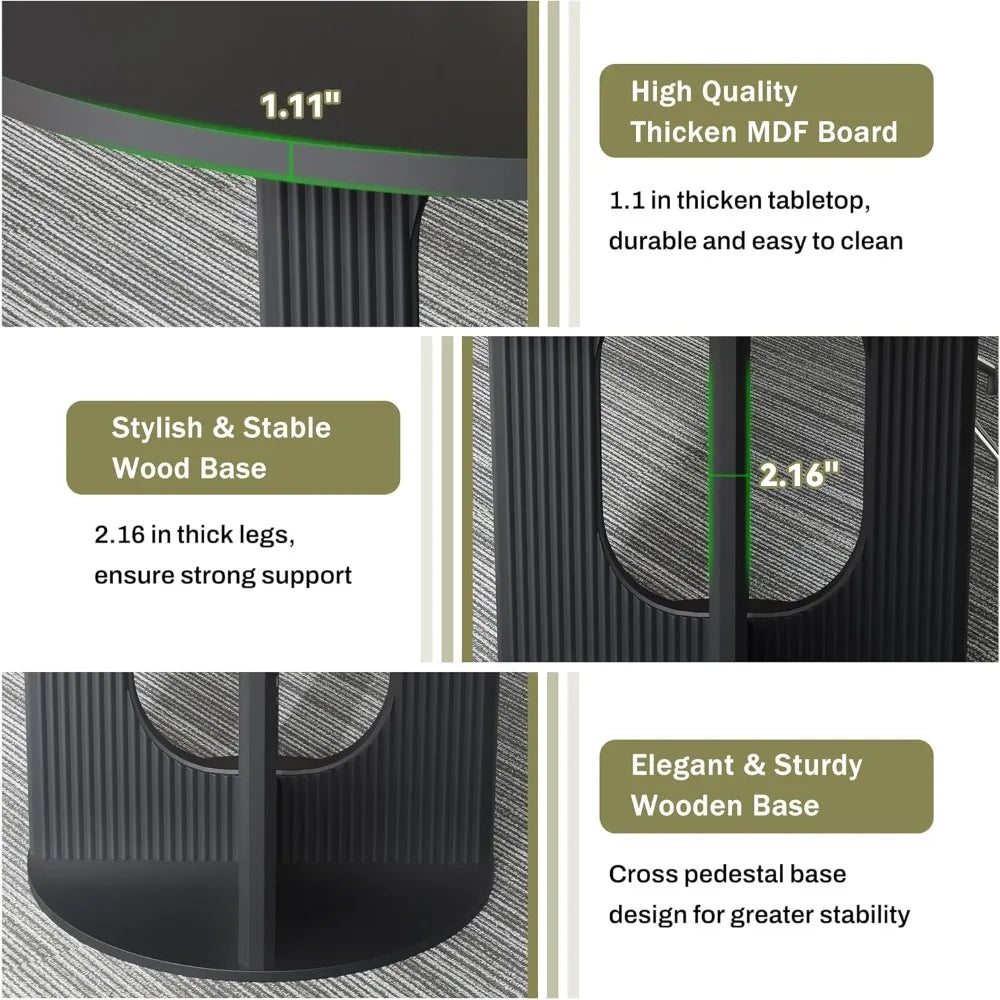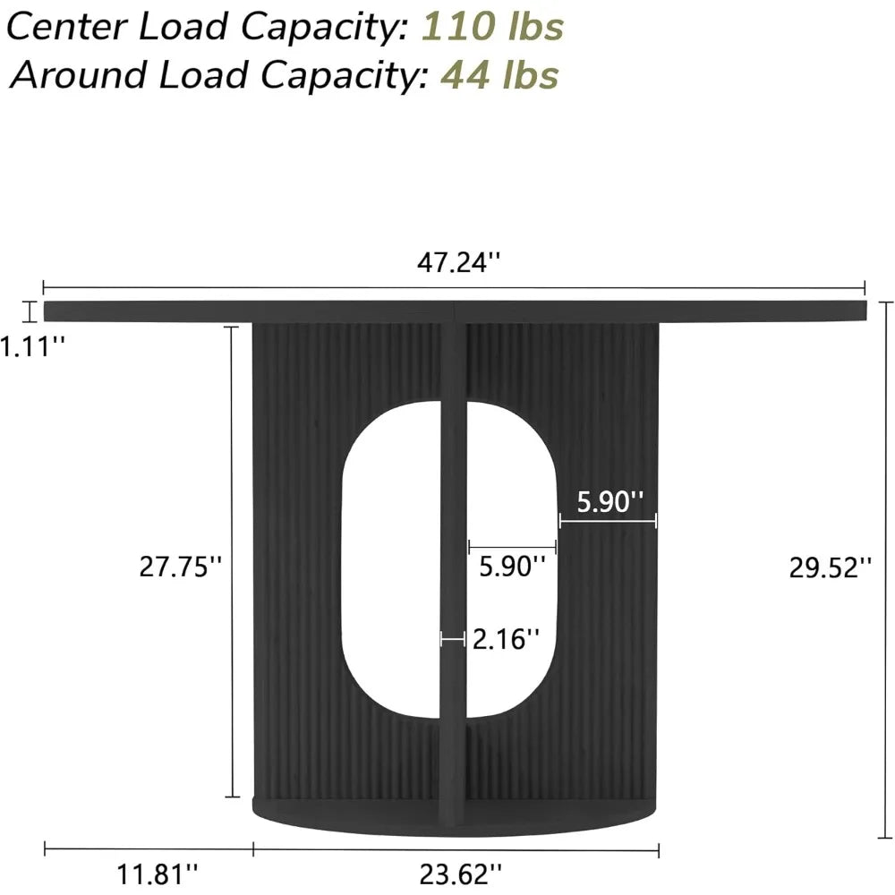 Farmhouse Round Fluted Dining Table for 4, 47 Inch Circle Kitchen Table with Wooden Pedestal Base, Dinner Tables for Home Living