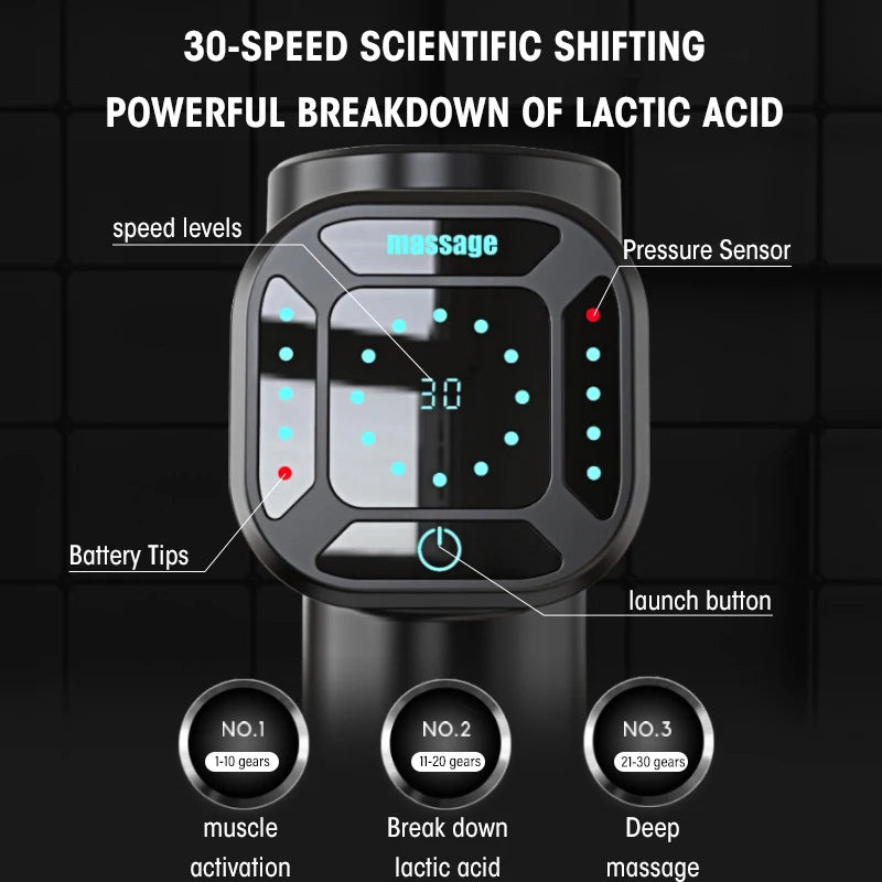 Massage Gun 30 Speed& 8 Heads Deep Tissue High Percussion Muscle Back Neck Massager For Athletes Pain Relief Fascia Gun