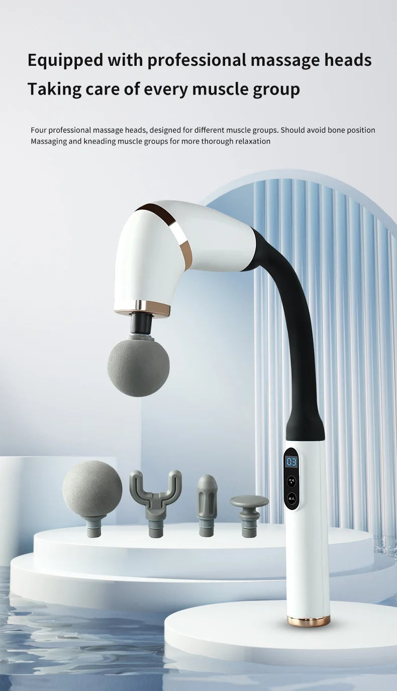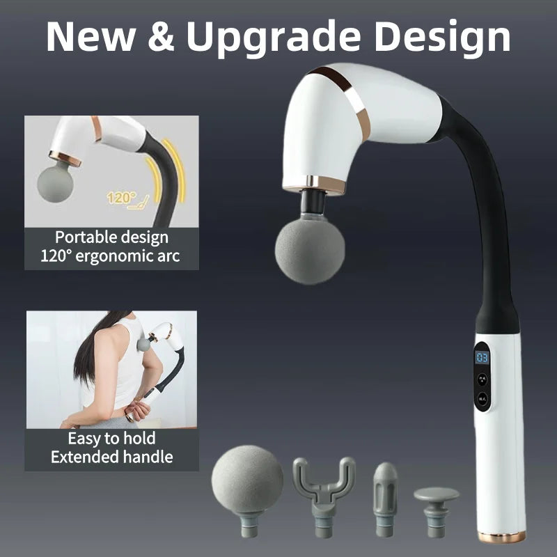 Massage Gun with Upgraded Extended Handle U-Shaped Back Massager Deep Tissue with 4 Massage Heads Fascia Gun Muscle Relaxation