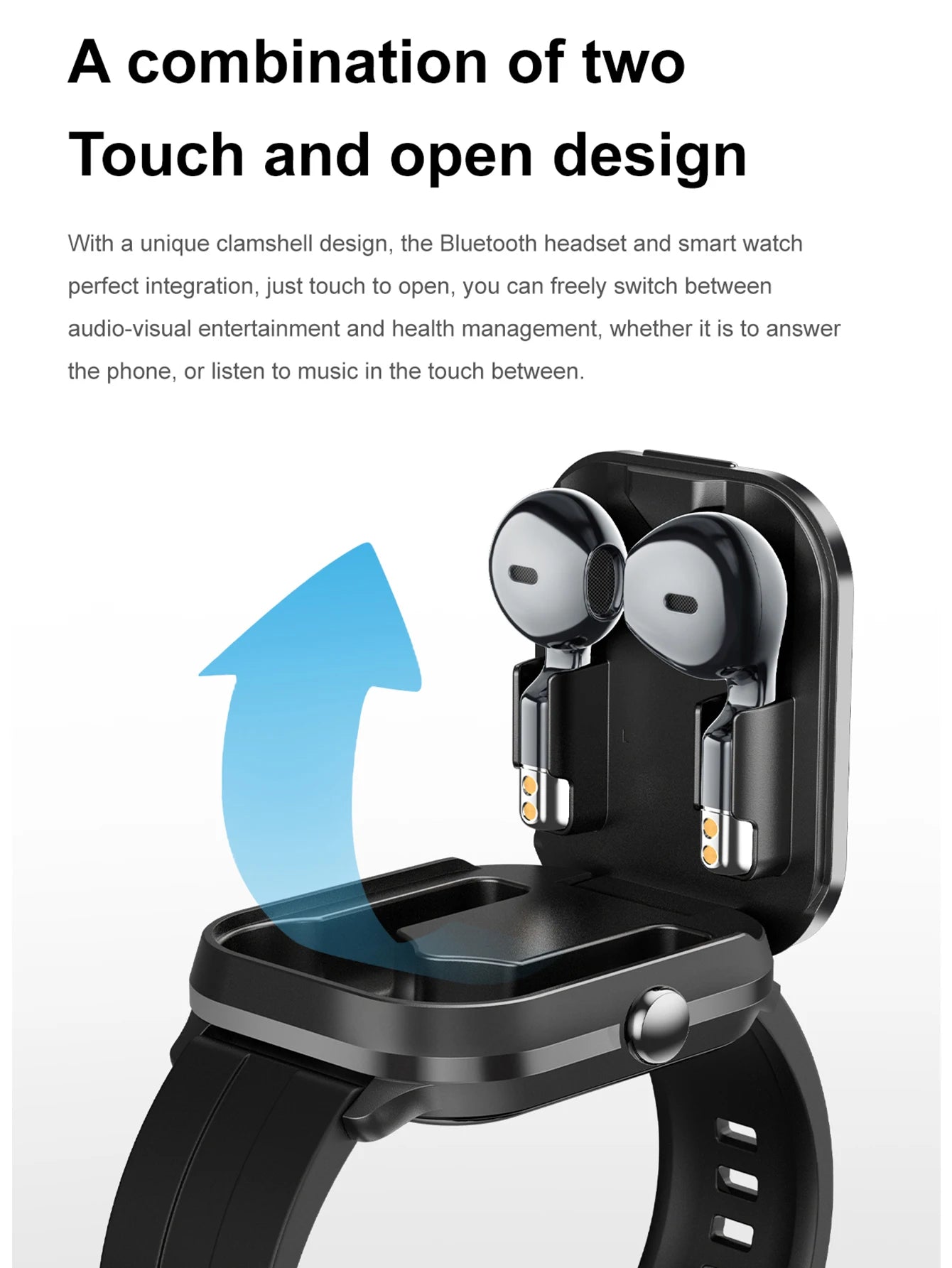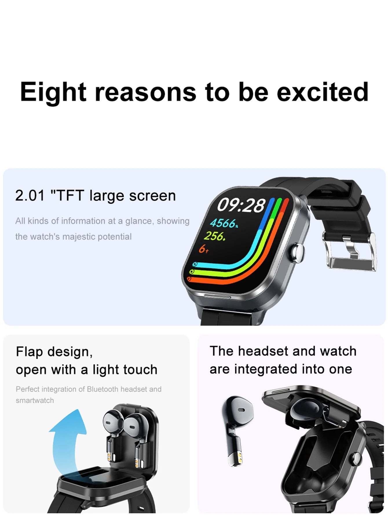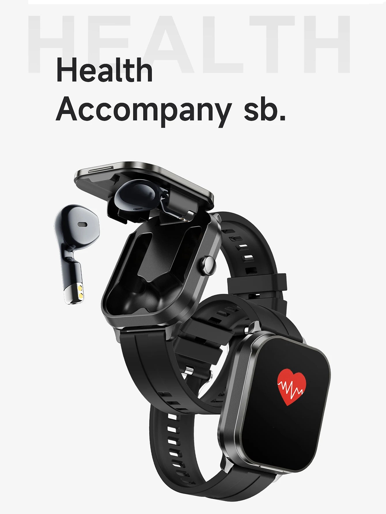 Men Smart Watch 2.01 inch HD Large Screen Waterproof Heart Rate Blood Oxygen Bluetooth earphone TWS 2 in 1 Make phone calls 2024