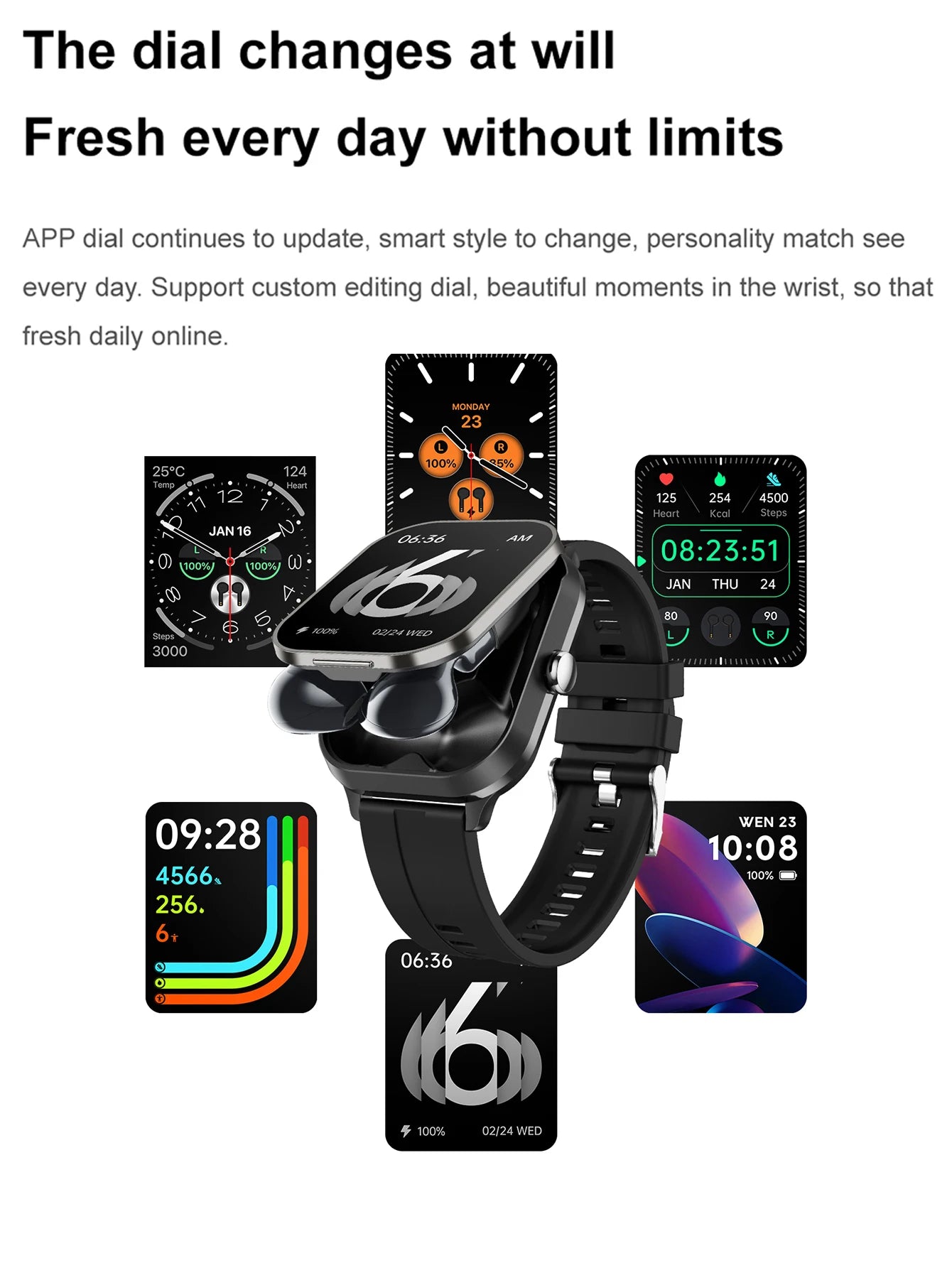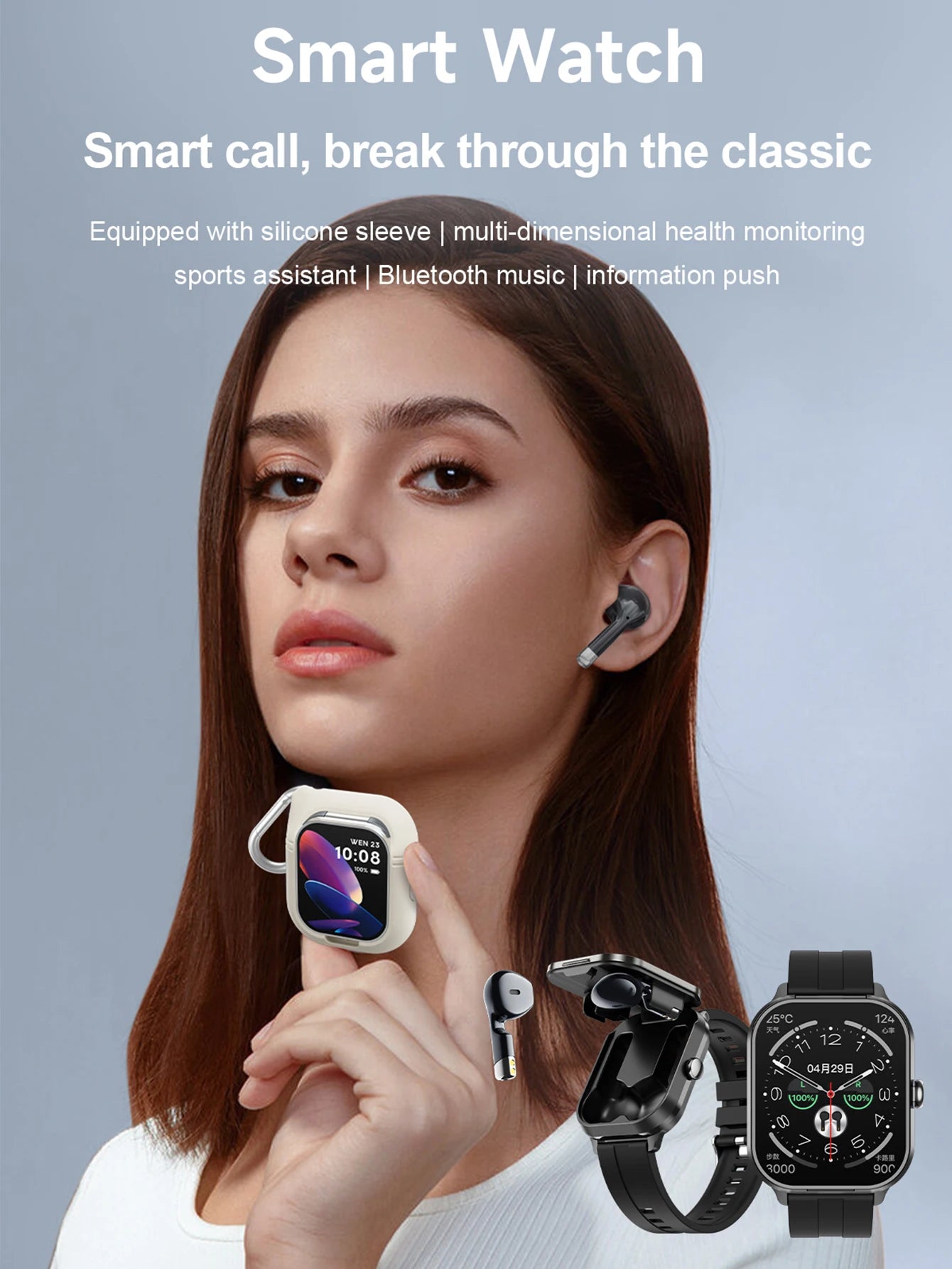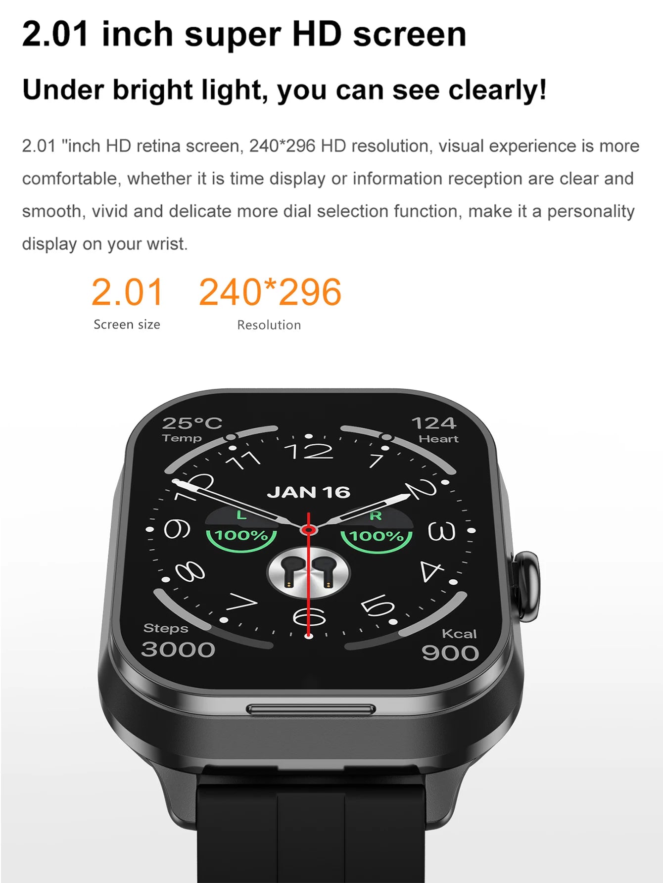 Men Smart Watch 2.01 inch HD Large Screen Waterproof Heart Rate Blood Oxygen Bluetooth earphone TWS 2 in 1 Make phone calls 2024