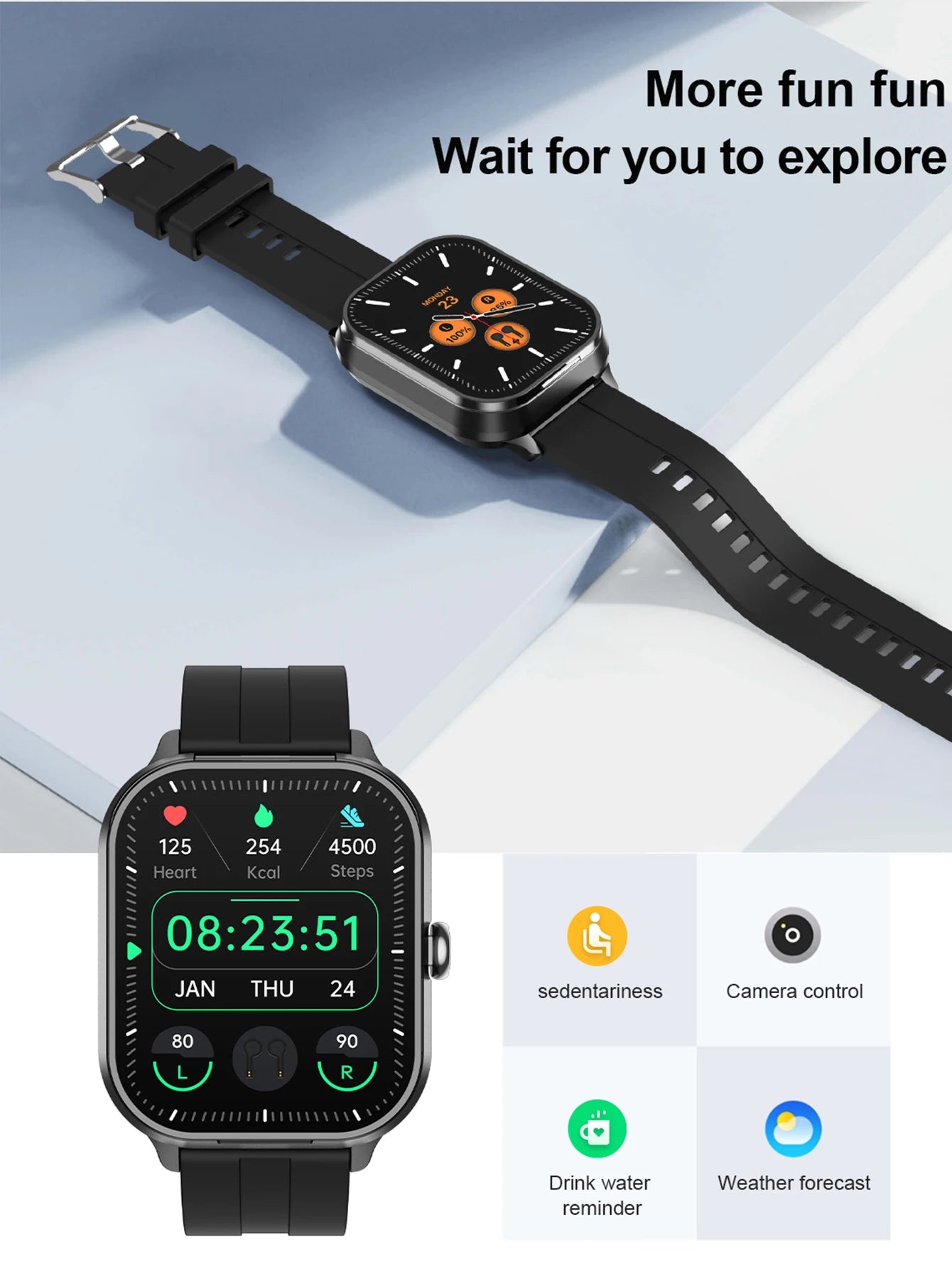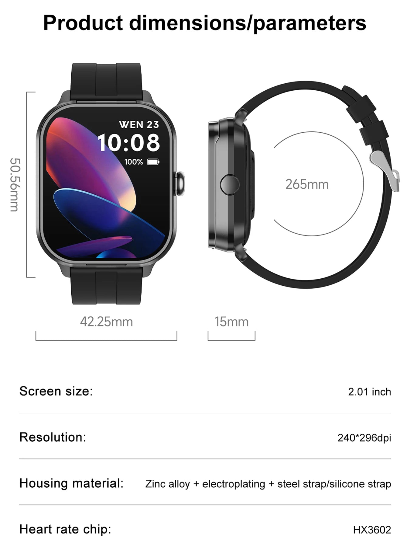 Function: Passometer,fitness tracker,sleep tracker,Mood Tracker,Message Reminder,Call Reminder,Answer Call,Dial Call,Push Message,Alarm Clock,Power Reserve,Month,Heart Rate Tracker,Interactive Music,Calendar,Calculators,Oxymeter