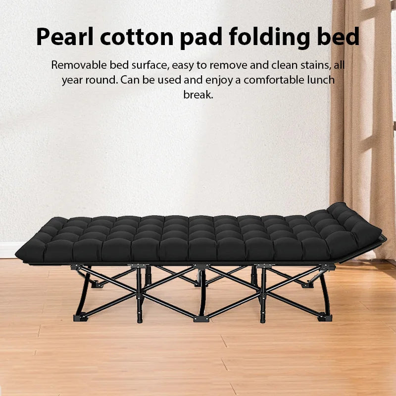 Outdoor Camping Folding Bed Single-Person Office Lunch Break Nap Bed with Soft Mattress Portable Recliner Garden Lounger Beds