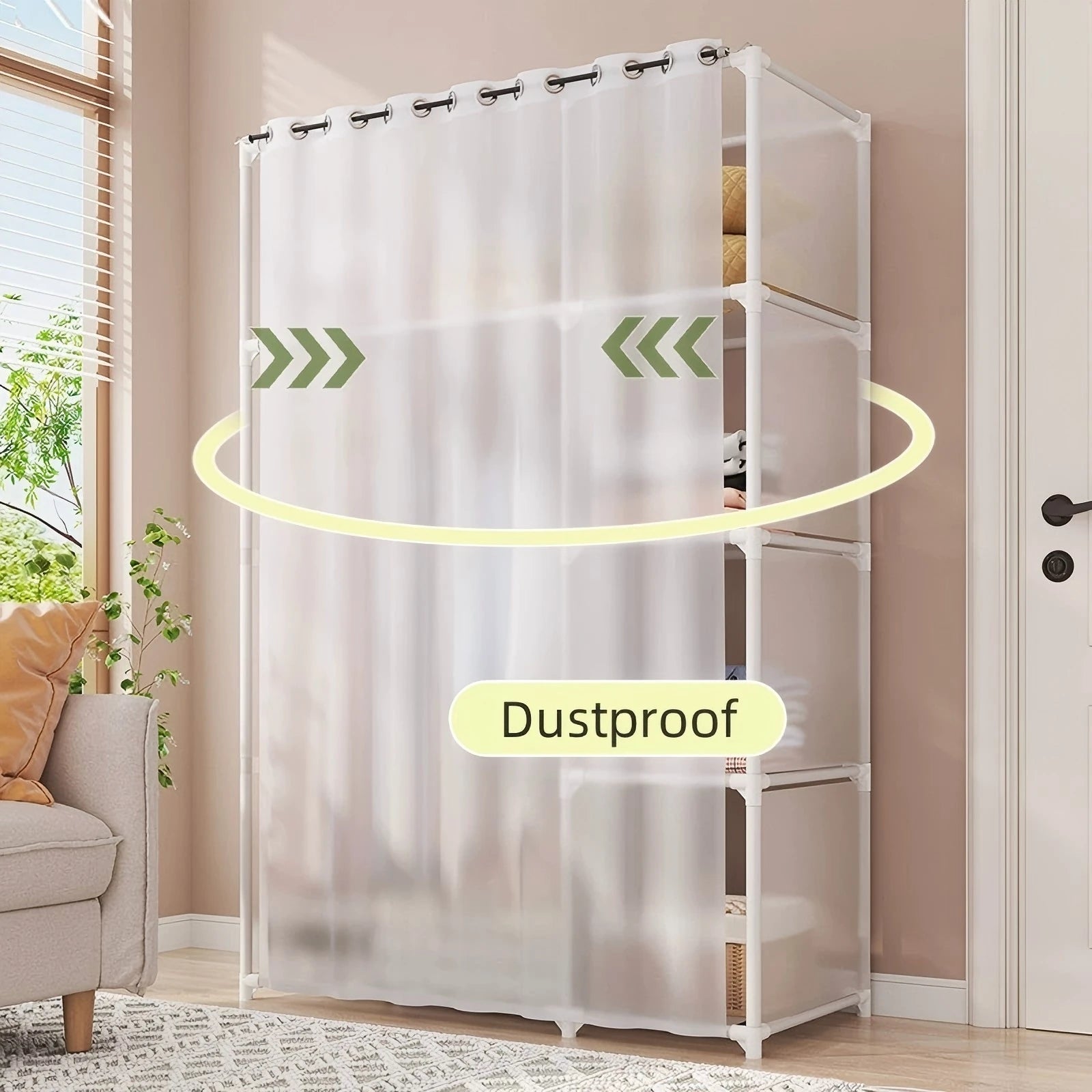 Wardrobe Rack Dustproof Cloth Closet Organizers Cabinet Large Capacity Heavy Duty Simple Assembly Bedroom Hanger Storage Shelves